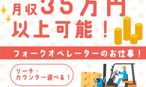| 業務内容 | ・リーチフォークリフト作業(8割) 移動、格納など入出庫作業がメインです。 ・手作業(2割) ハンディ使用します! ・仕分け、梱包 ☆冷暖房完備でカイテキ ☆取り扱い商品は家電量販店の商品が中心です ☆男女活躍している職場です! 倉庫内: 20名(男性9割) 服装自由、喫煙所あり |